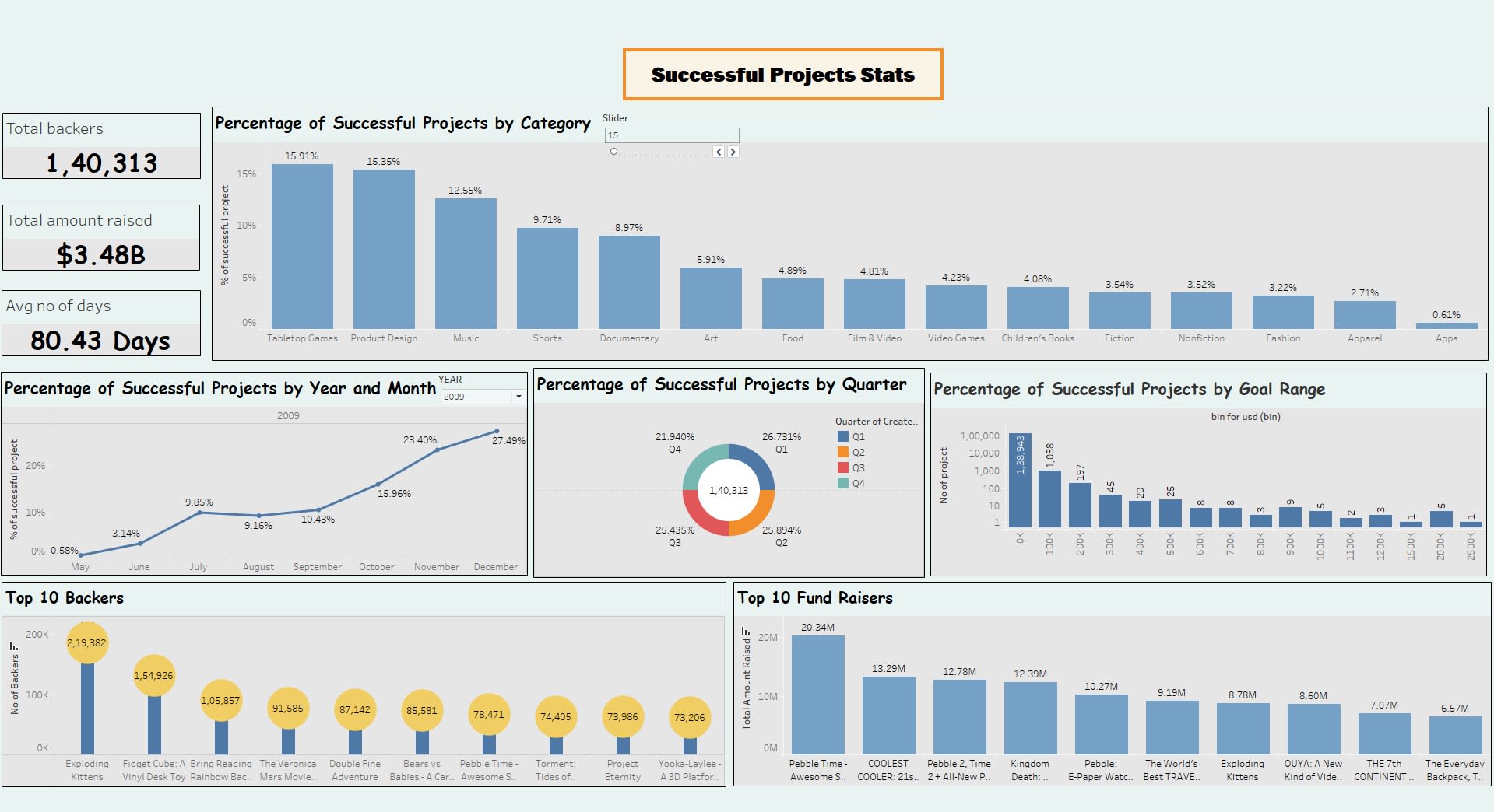 3. Highlight key contributors and successful fundraisers, offering insights into the characteristics of high-impact backers and projects.