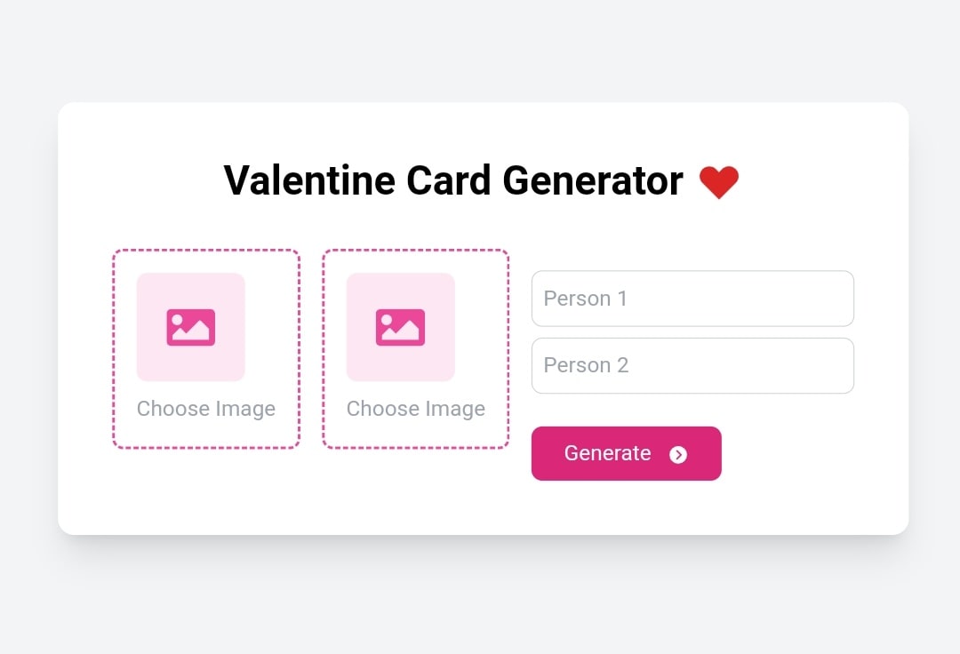 With Valentine's Day being celebrated today, there is a need for a quick and easy way for people to express their love and affection to their significant others, family, and friends. However, not everyone has the time or creativity to make a personalized Valentine's Day card. To solve this problem, the Valentine's Day e-card generator project aims to provide a solution by allowing users to create personalized e-cards that can be shared digitally with their loved ones.
