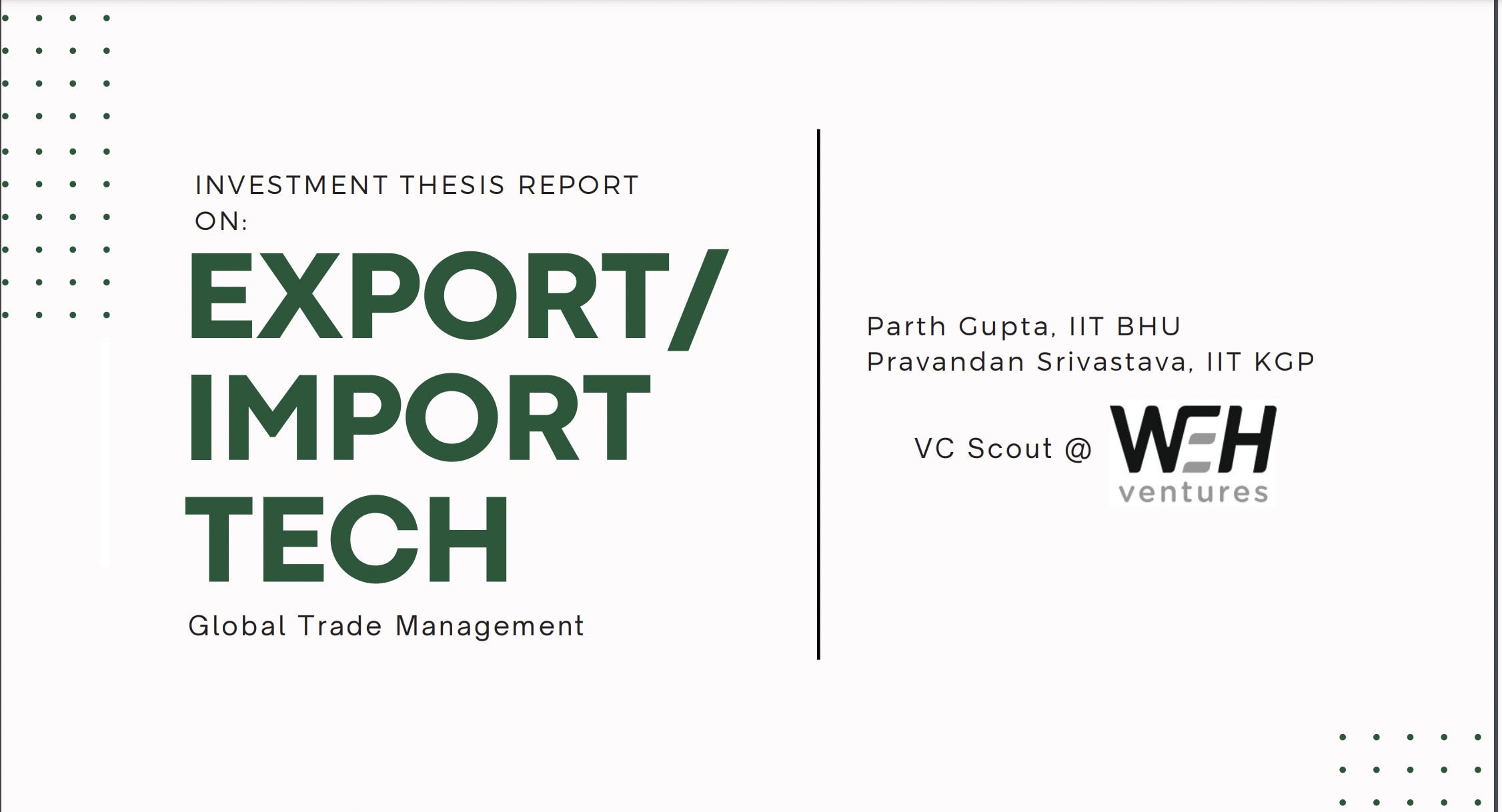 Investment report centered on the Export-Import Tech Sector. Focused on Global Trade Management SAAS Tools, and I'm thrilled to say that we crafted one of the best reports. We presented our findings through an insightful deck that encapsulated the exciting opportunities within this niche.