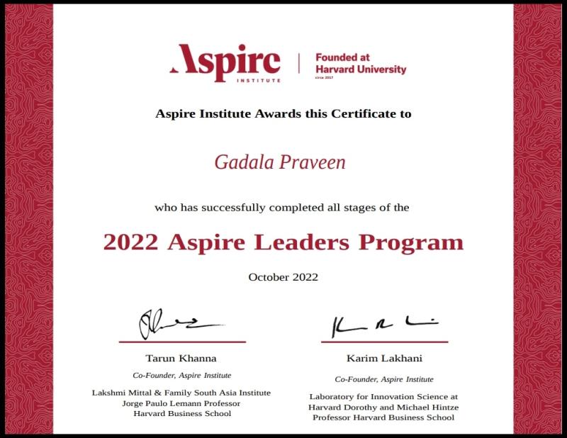 I have been one of the 300 finalists to cross 5 levels of the Aspire Leaders program to interact and learn case studies from HBS Lecturers from a pool of 22000+ applicants from 65+ countries.