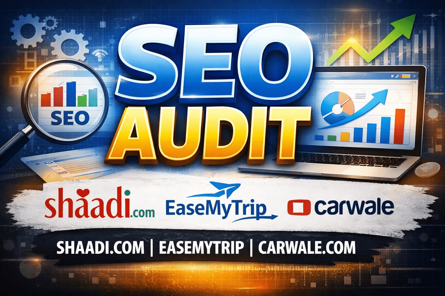 Did a thorough SEO audit for Shaadi.com, Easemytrip and Carwale.com as part of my minor project at MyCaptain, covering on-page, off-page, and technical SEO issues.
