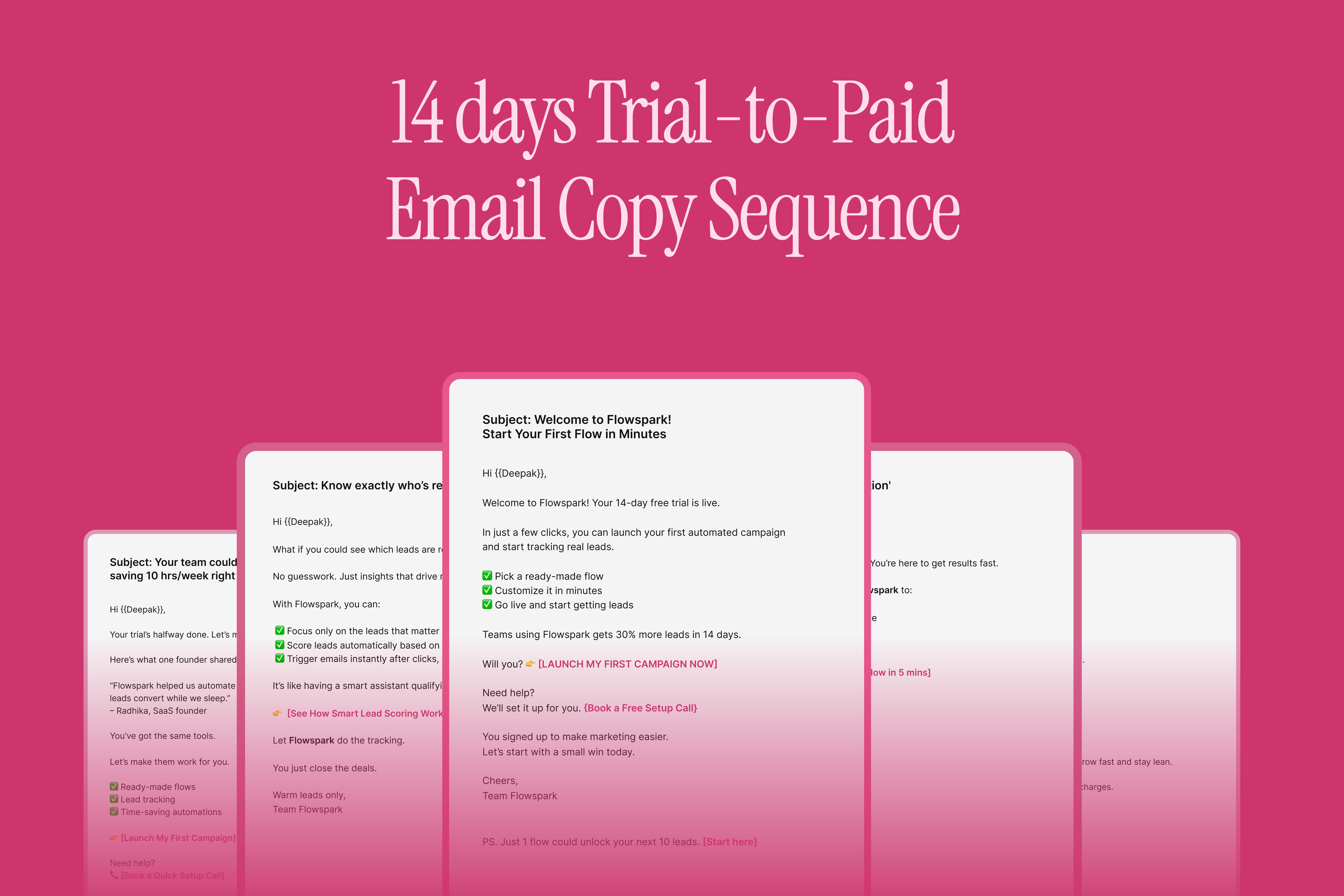 As the copywriter, I was asked to write an email sequence to guide trial users, build trust, and encourage upgrades by Day 14.