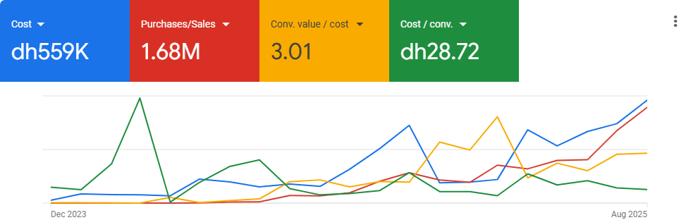 I managed the Google Ads campaigns for Naseem Perfumes from Dec 2023 to Sep 2025, targeting 8 international markets – India, Kuwait, USA, UAE, France, Australia, Oman, and the UK.