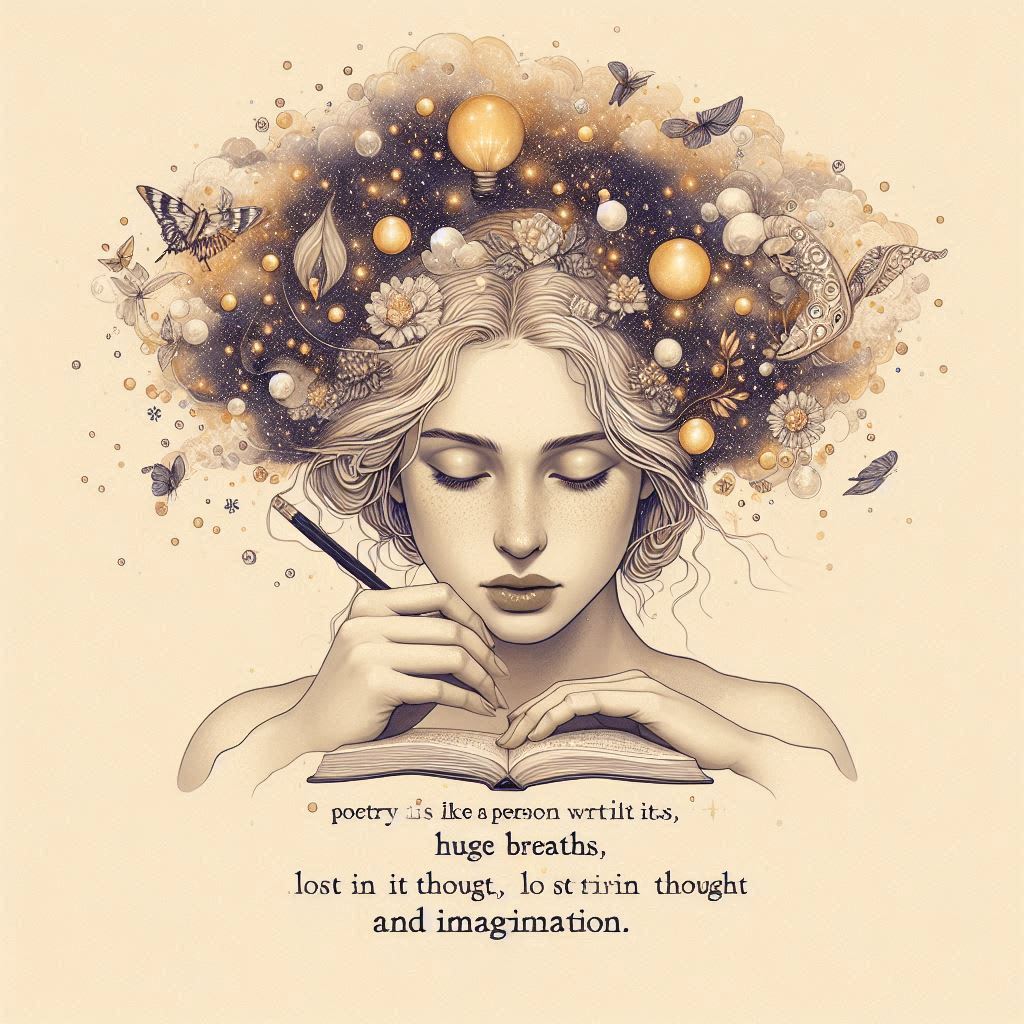 Tools used: Google Docs and Microsoft Designer's Image Creator (Prompt used: Poetry is like a person writing itself, taking huge breaths, lost in thought, and imagination)