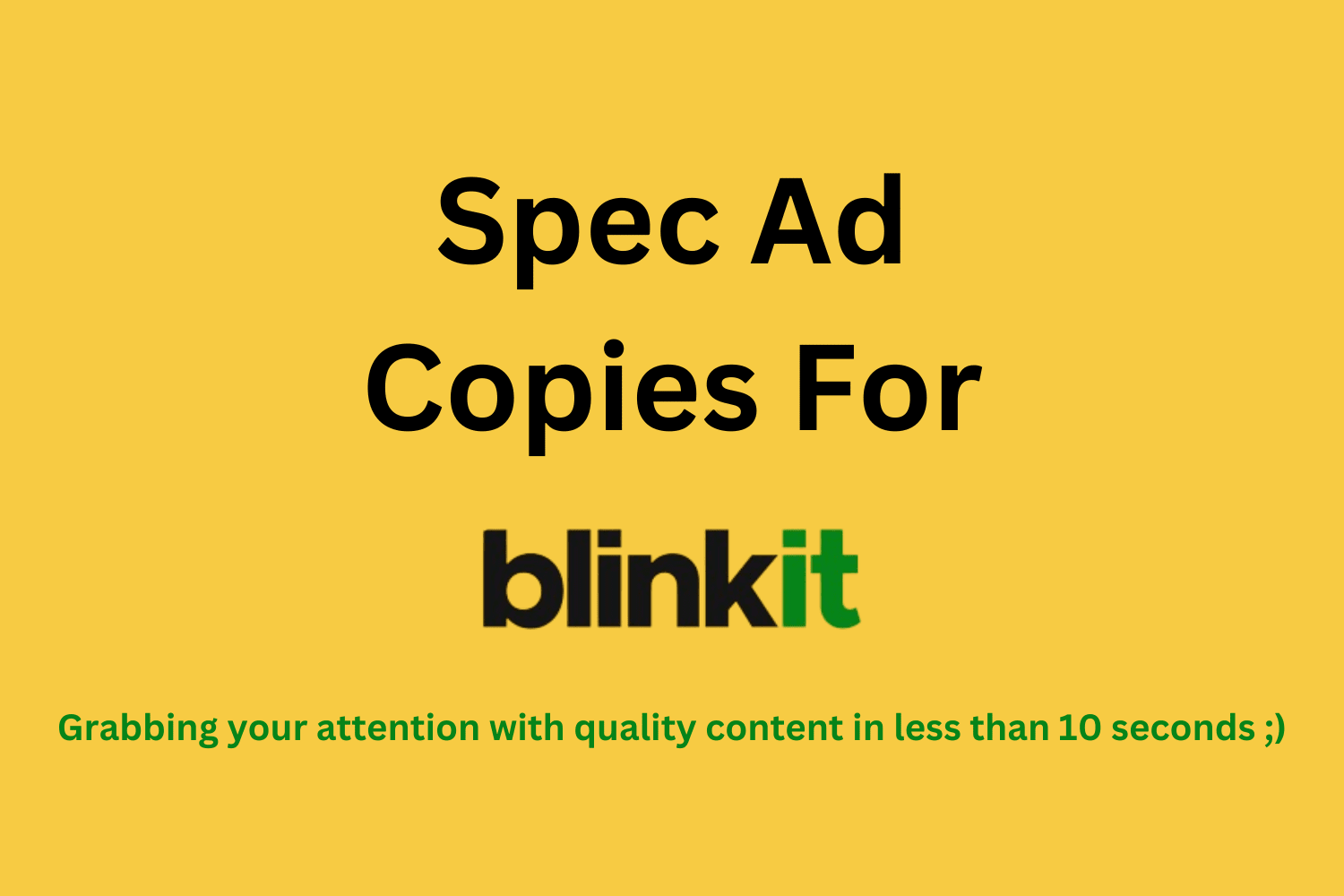Objective: Blinkit had put a hiring post for creative writers. So Anuj, Lakshay and I took this as a collaboration opportunity to design and write the spec ad copy. We aimed to collaborate, understand Blinkit's brand language, target customers and crafted witty and funny spec ad copies.