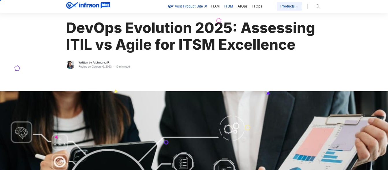 The blog compares ITIL and Agile methodologies for IT Service Management (ITSM). ITIL focuses on stability and structured processes, while Agile emphasizes flexibility and rapid response. Both have unique benefits for optimizing ITSM.