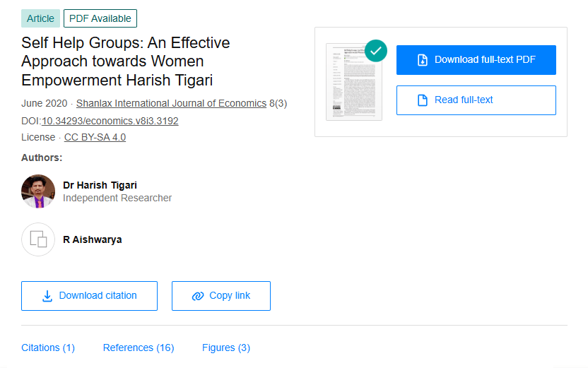 The research article "Self Help Groups: An Effective Approach towards Women Empowerment" explores how Self-Help Groups (SHGs) empower women economically and socially. It highlights the role of SHGs in generating self-employment and eradicating poverty in rural and urban areas. The study provides empirical evidence of SHGs' contributions to self-employment, using data from SHG members. The findings emphasize the importance of women's participation in economic activities and how SHGs help create women entrepreneurs.