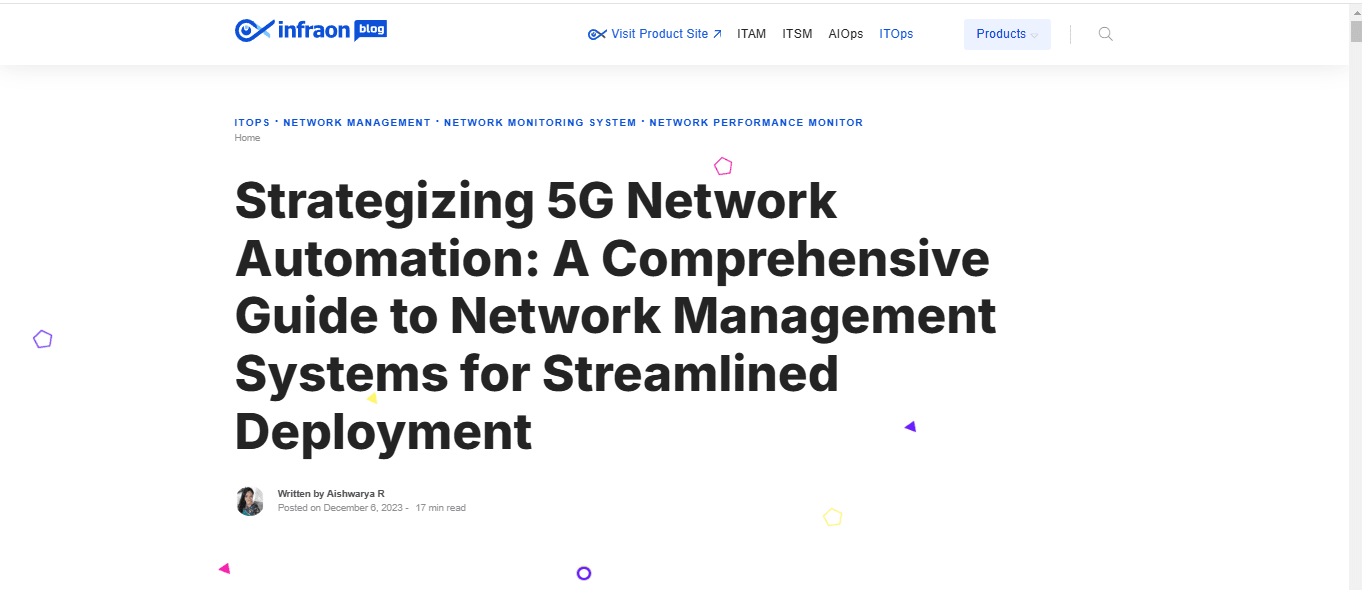 The blog post "A Comprehensive Guide on 5G Network Automation" explores integrating 5G technology with network automation. It highlights the benefits of automating 5G networks, such as improved efficiency, reduced operational costs, and enhanced performance. The guide also addresses the challenges of deploying 5G networks and provides strategies for overcoming them.