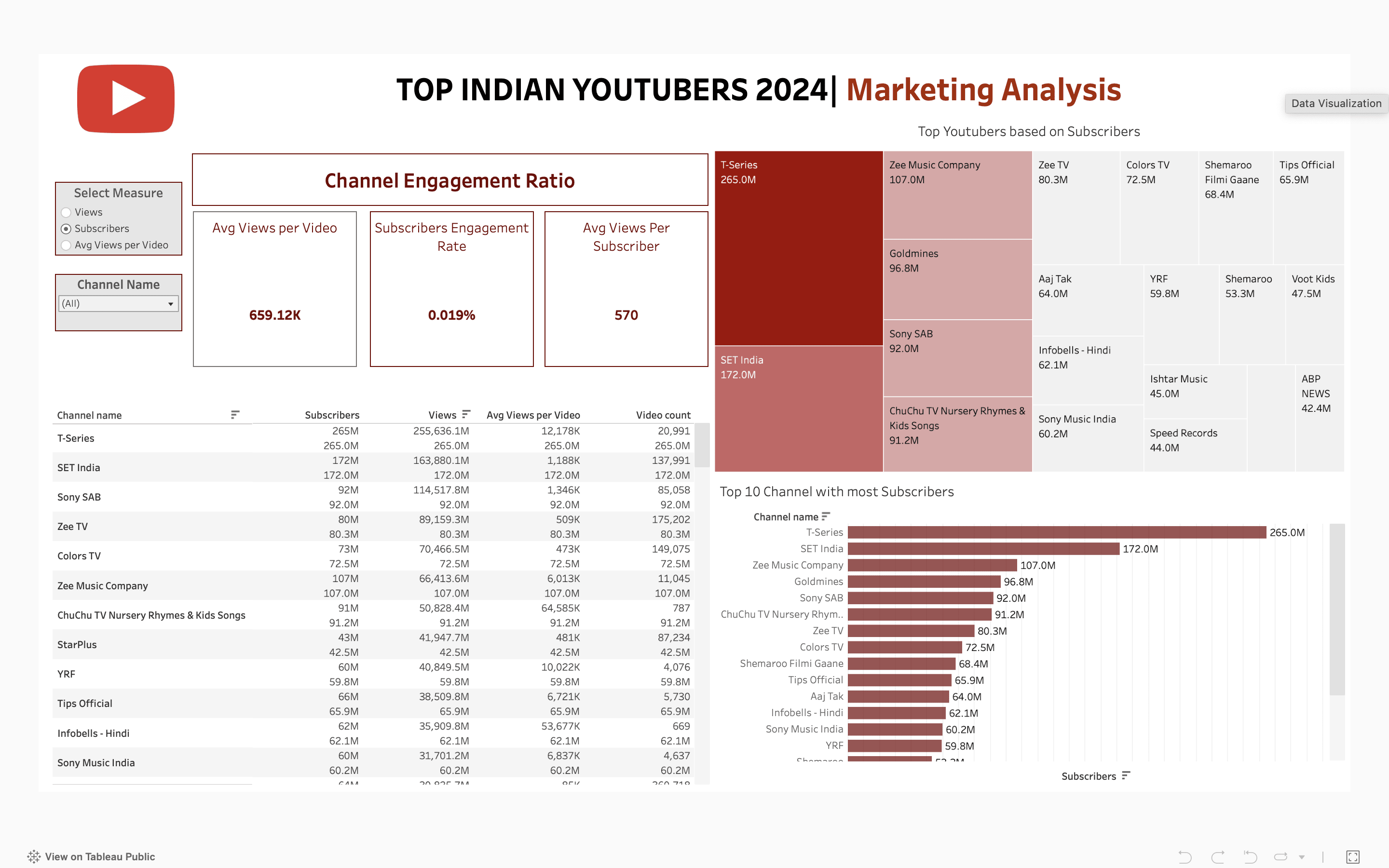 As the Head of Marketing, I want to use a dashboard that analyses YouTube channel data in the India.