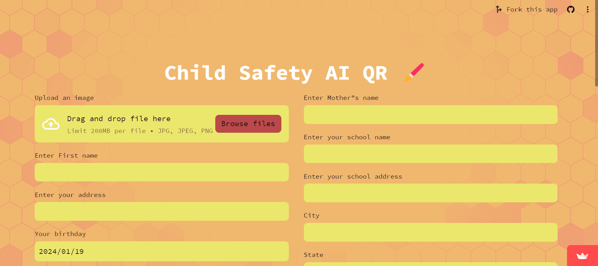 Child Safety AI QR is a web application designed to enhance child safety by converting filled forms into AI art QR codes. These QR codes can be printed as stickers, keychains, badges, and more. In the event of an emergency or when a child is lost, anyone with a QR scanner can access the child's details in a PDF format. This project was developed in Python and deployed on Streamlit.