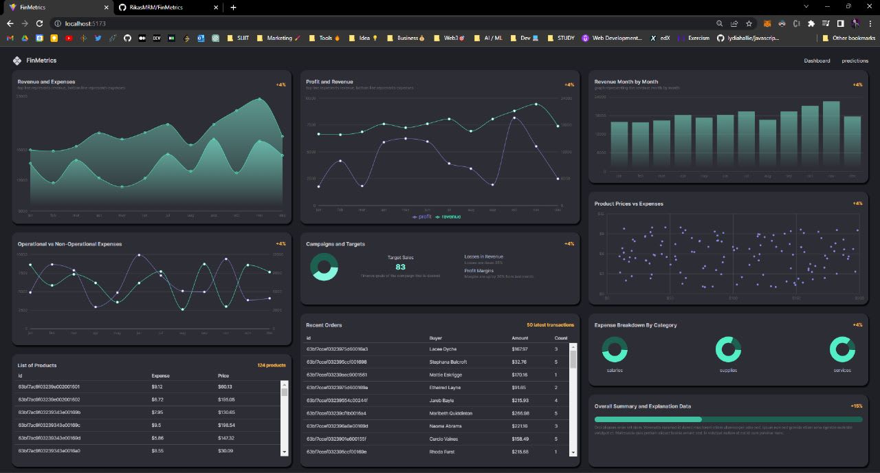 FinMetrics | MERN Finance Dashboard App that has Machine Learning Predictions
