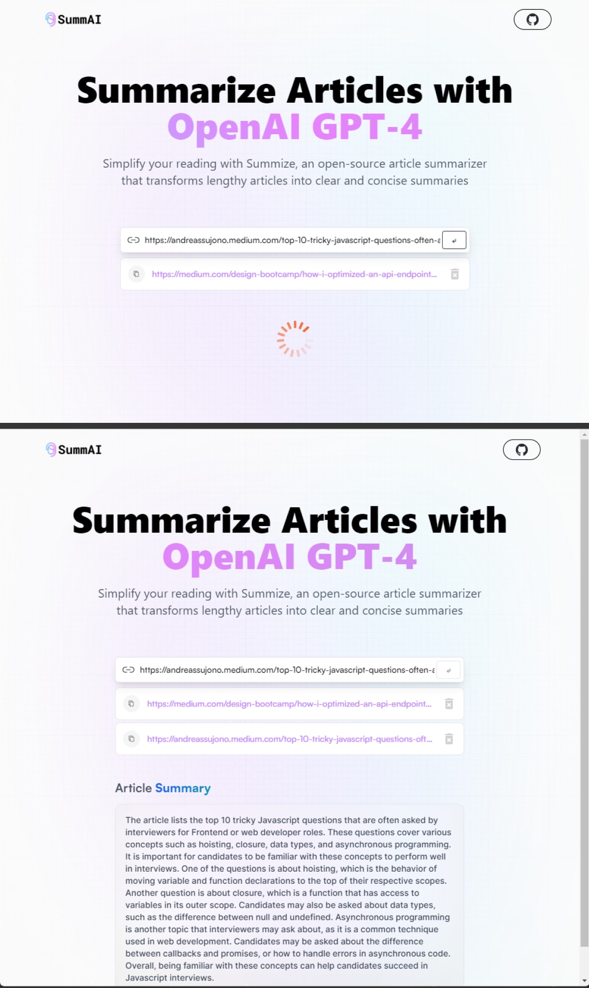 SummAI - Article Summarizer Application using OpenAI's GPT model.