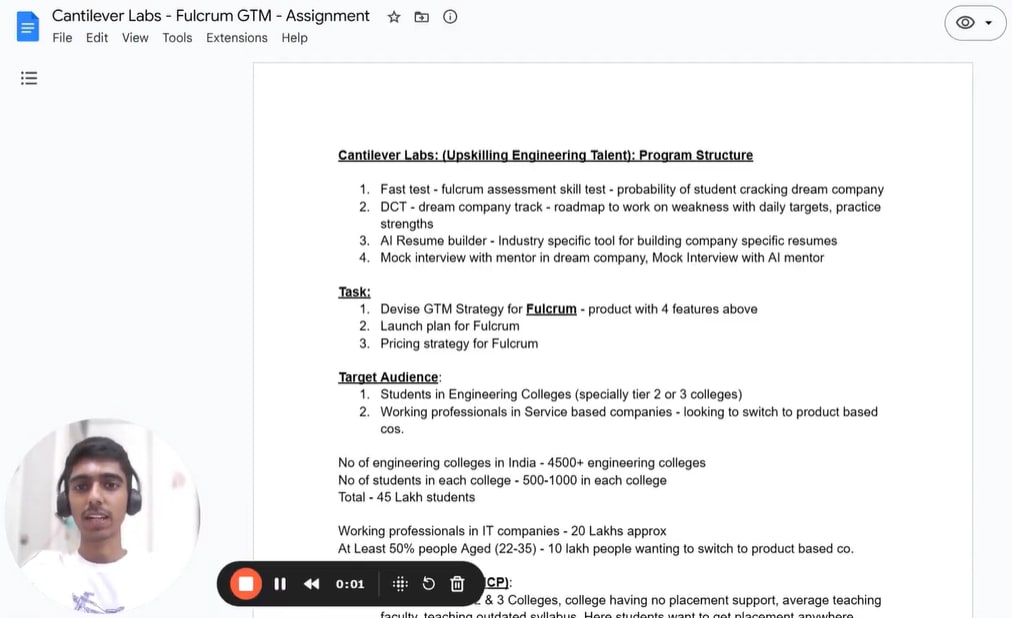 Launch Fulcrum, a platform helping engineering students (Tier 2/3 colleges) and IT professionals transition to product roles through AI-driven skill assessment, personalized learning roadmap, resume building, and mock interviews.