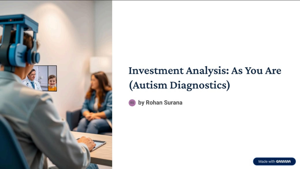 Conduct a comprehensive investment analysis of As You Are, a telemedicine startup providing scalable autism diagnostics, to evaluate market opportunity, competitive positioning, revenue potential, and investment viability.