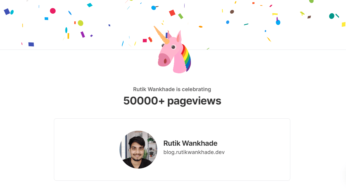 My blog at https://blog.rutikwankhade.dev reached 50k+ pageviews on Hashnode. I write about web development, Js, React, my side projects, and productivity.