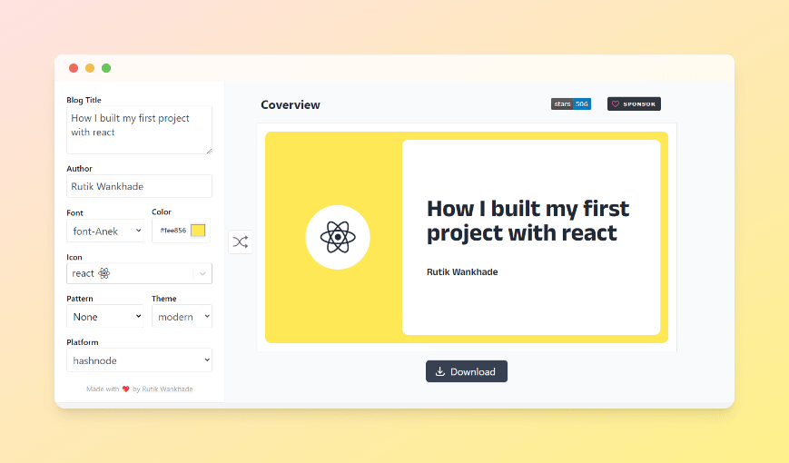 Coverview is a tool to create cover images for blogs quickly and easily.