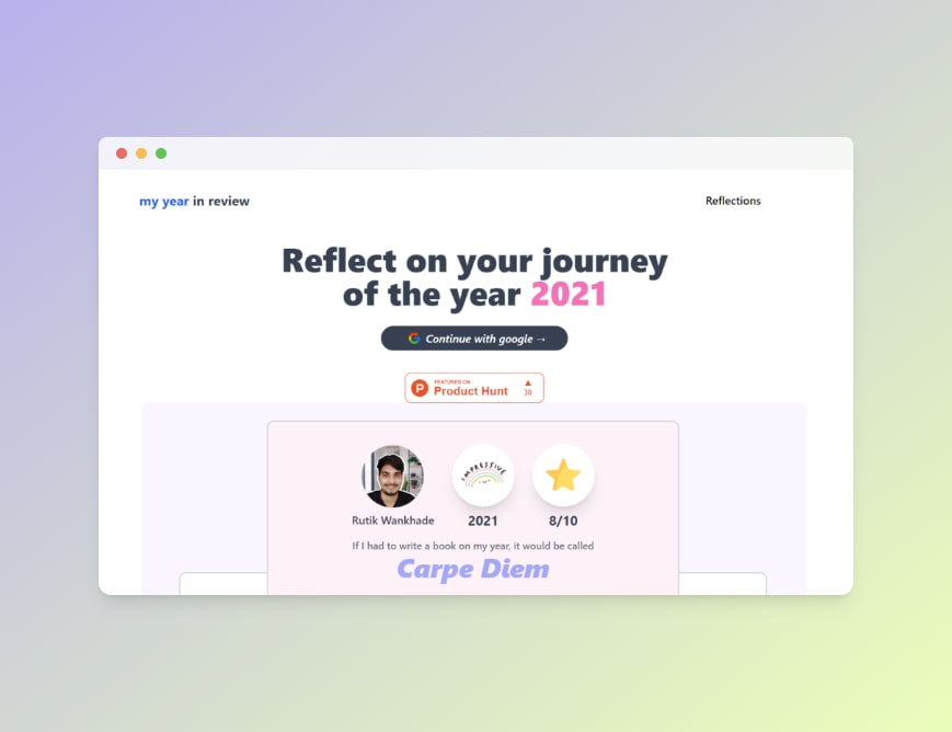 myyearinreview is an app to reflect on your year in a simple, guided, and fun way.