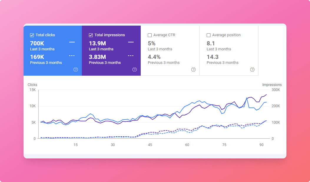 Scaled Pixelbin.io from near-zero visibility to 869K clicks and 17.7M impressions through technical SEO, programmatic pages, and intent-driven content architecture. A data-backed SEO engine that consistently compounds growth month over month.