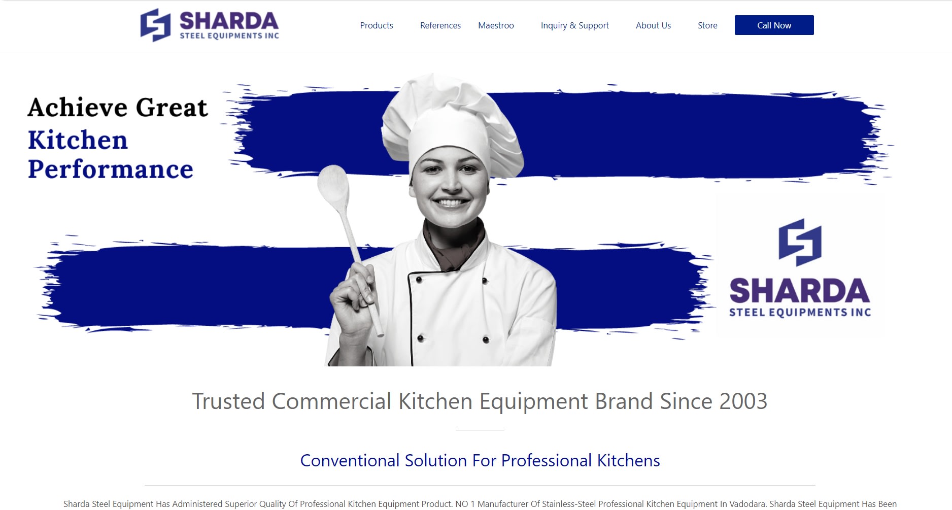 Shardaequip.in is a WordPress-based product website designed to showcase commercial kitchen equipment with high-quality images, technical specifications, general descriptions, and an easy inquiry process.