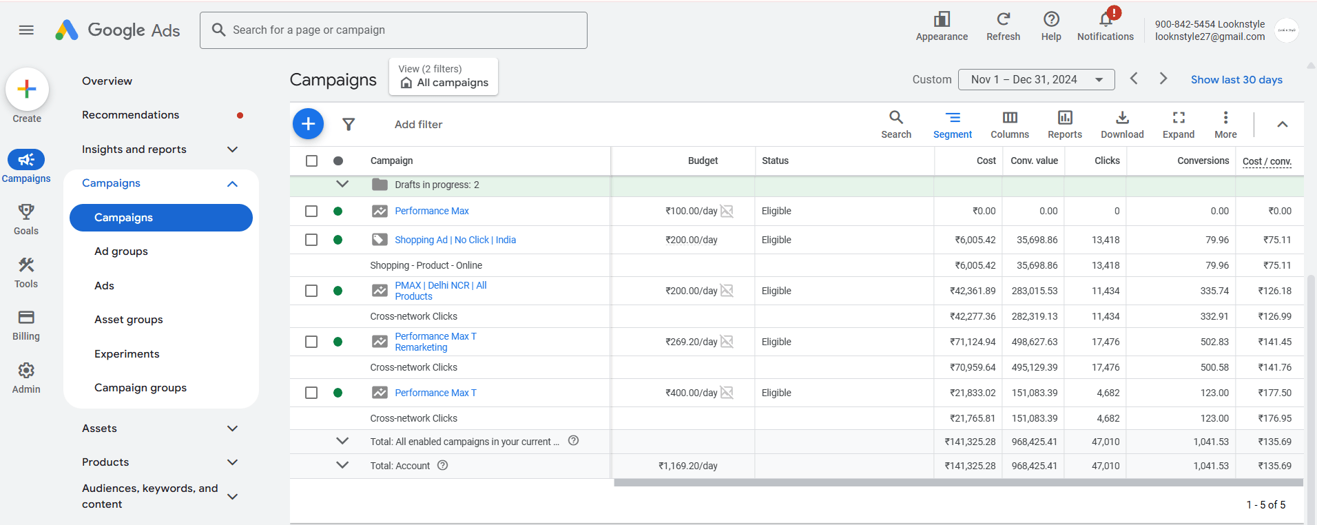 Looknstyle is an e-commerce website and I created Google ads campaigns for it which gave us very good ROAS