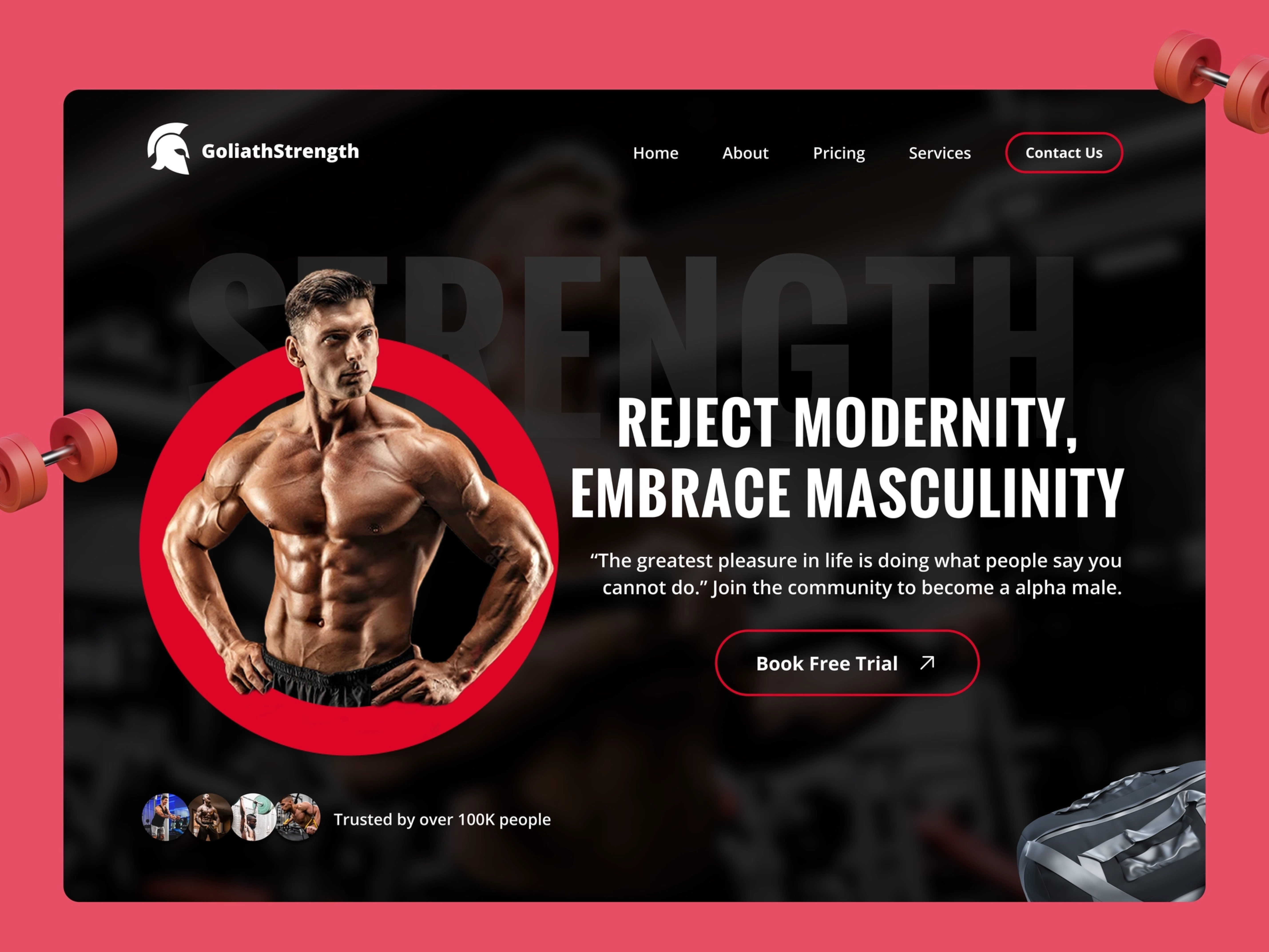 Objective: My intention was to create a strong and masculine landing page for a gym website that would inspire people to visit the gym. Additionally, I aimed to feature the powerful sense of community within the gym.