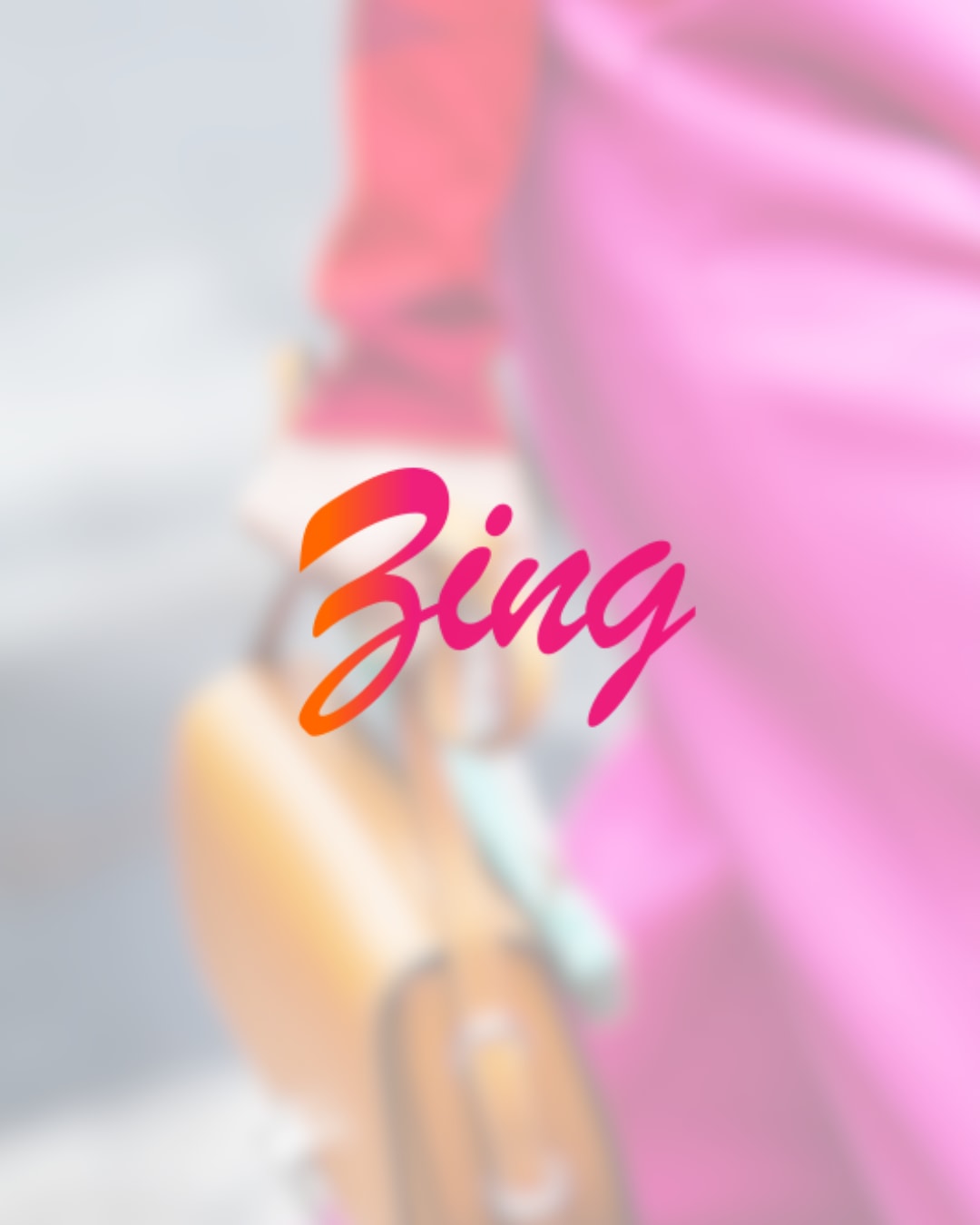 Here's a logo of the Zing brand designed by me. Zing is a fashion brand aiming to provide fashion outfits and accessories to women. They want their branding to be a mix of both minimal and bold. They want to have pink and orange as the main colors in their brand as these colors reflect the warmth and blush for women!