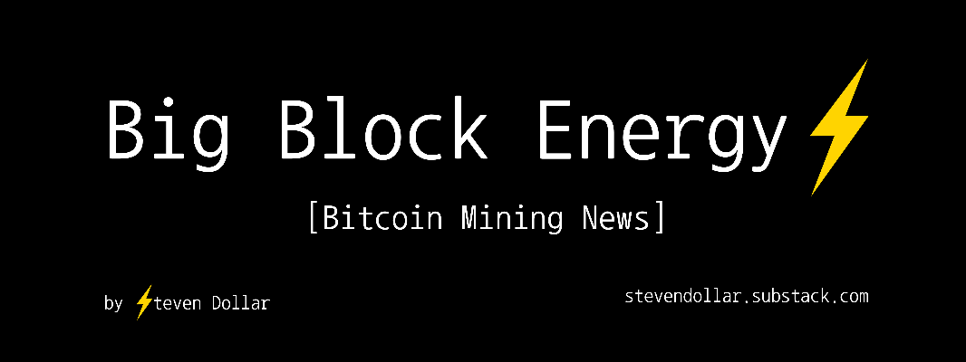 Follow me to learn about the Proof of Work Revolution and the Bitcoin Mining Industry and consider subscribing to my weekly newsletter on Substack, BIG BLOCK ENERGY. https://stevendollar.subs