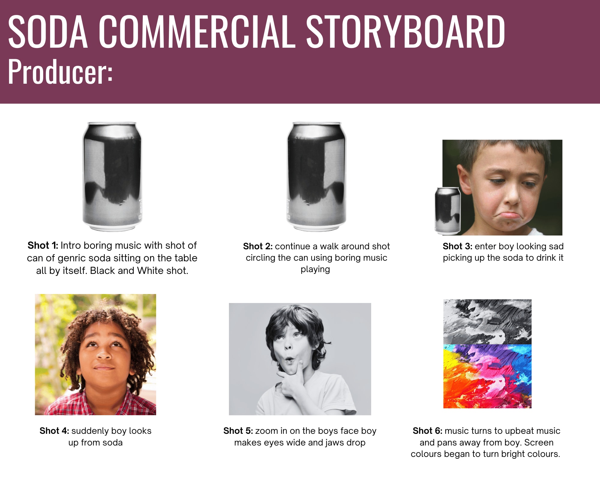 I have created this storyboard template for a soda commercial. It took just 20 minutes to build this template. I have made this template for my portfolio. I made this on CANVA pro account.