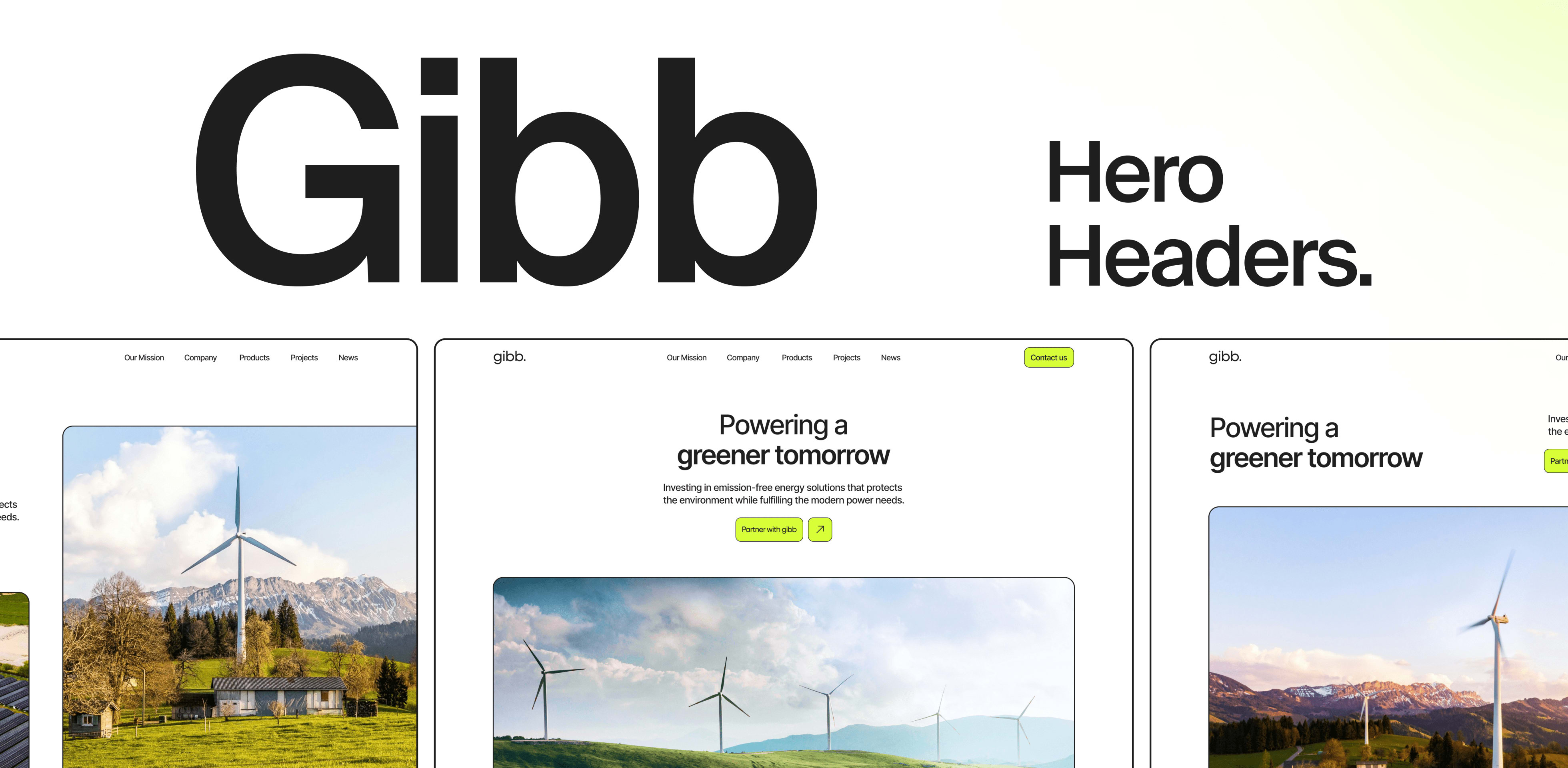 Gibb is a free collection of 3 hero header templates with clean and different layouts!