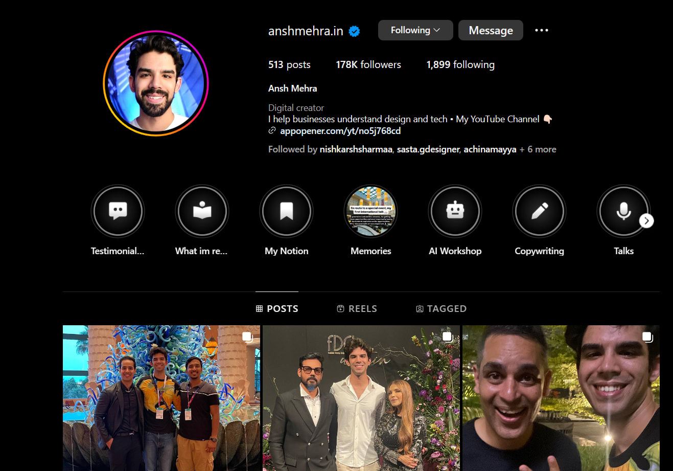 Worked as a personal Copywriter for Ansh Mehra (Instagram Design Influencer)- Social Media Captions- Workshop Descriptions- Worked on an AI Ebook- Managed a weekly Newsletter based on AI content - Video Scripts
