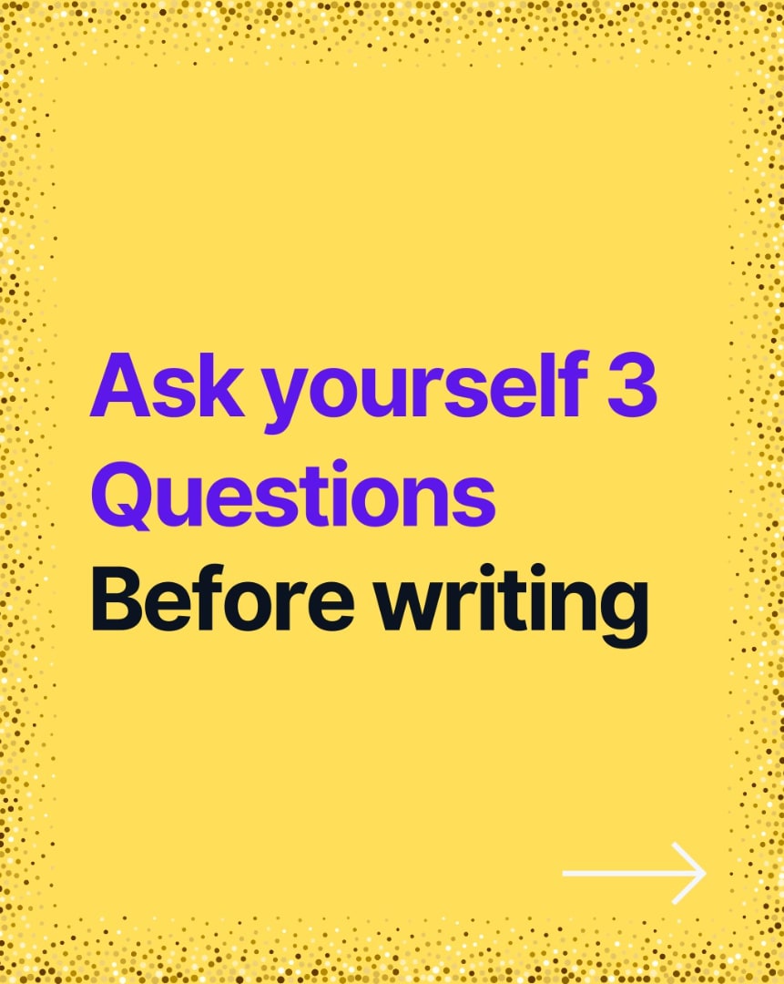 To write better ask yourself 3 questions before writing anything. Check out the carousel to learn them!