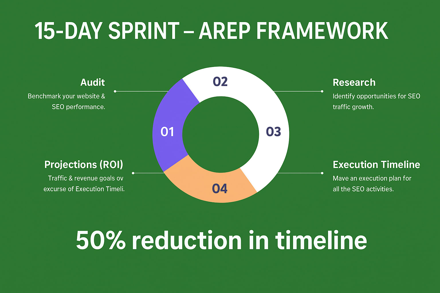 Over the past 2 years, I led the creation and review of 100+ SEO strategies across 25+ industries using the AREP (Audit, Research, Execution, Projections) framework. The framework was designed to identify gaps, build scalable organic growth plans, and align SEO with business goals. I also reduced the sprint timelines from 30 days to just 15 through process improvements.