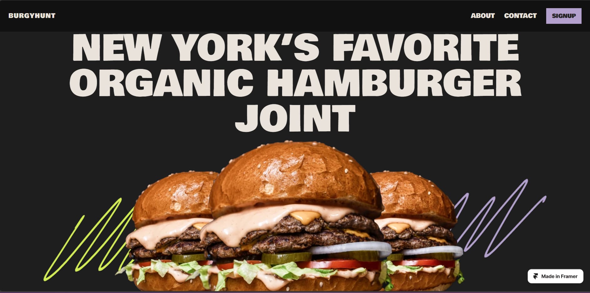 - Visual Appeal: Built with Framer, the website boasts an eye-catching design that enhances your burger-hunting experience.