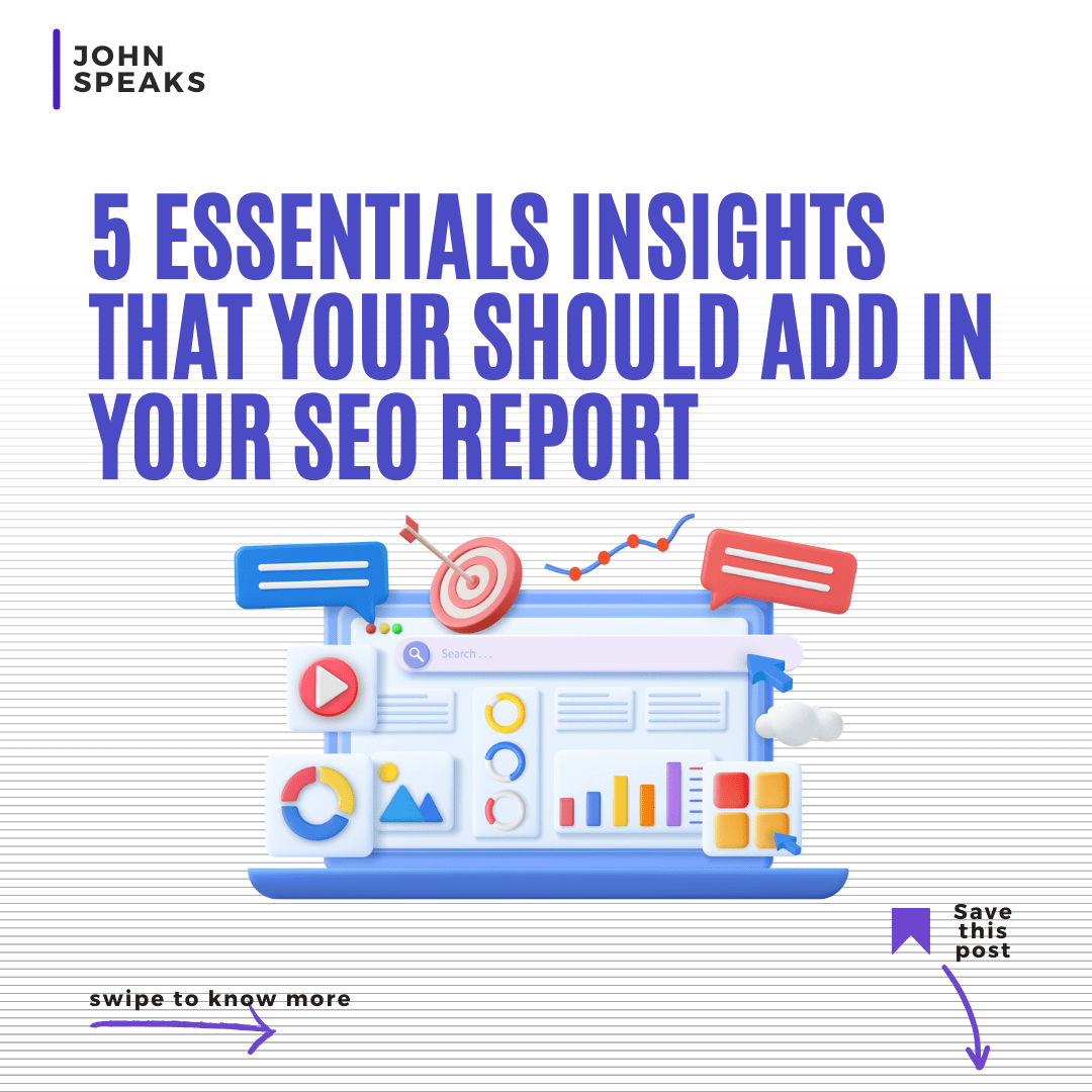 Through meticulous design and content writing, I have created an Instagram Carousel focused on the topic of "5 Essential Insights to Add in Your SEO Report." Each slide within the carousel is dedicated to a key insight, utilizing engaging visuals and clear, informative content. This solution ensures that the audience not only grasps the importance of these insights but also finds the information accessible and shareable on the Instagram platform.