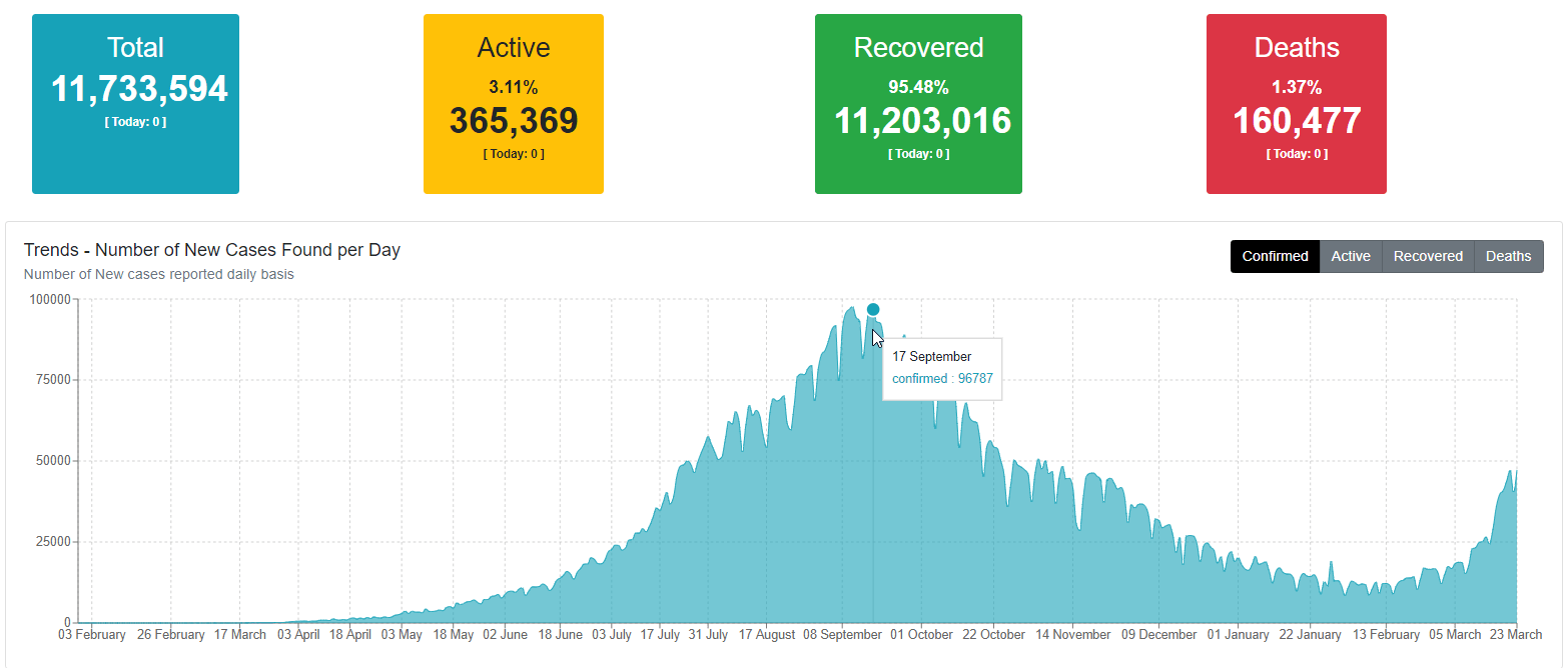 With the outbreak worldwide and an increasing number of active patients, there are many efforts to project the data in some form for people to follow and understand.