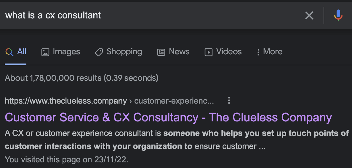 TCC's Customer Experience Consulting Services page is ranking #1 on Google SERP. 🥳