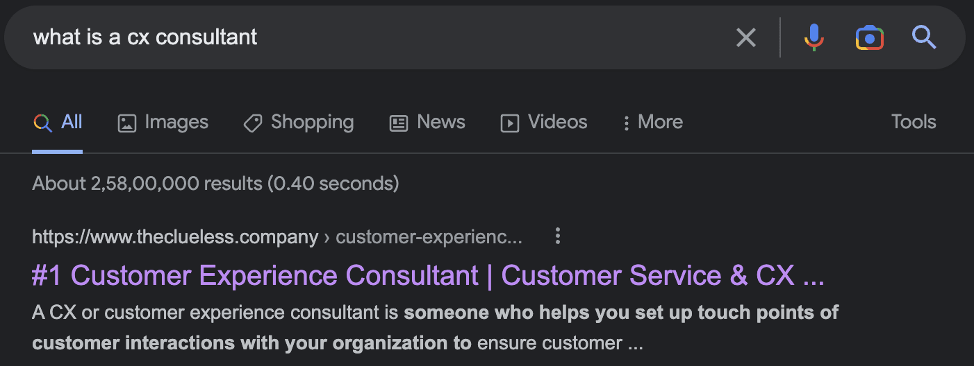 The Clueless Company - A company helping B2B SaaS Brands in Customer Experience ranks first on Google out of 2,58,00,000 results.