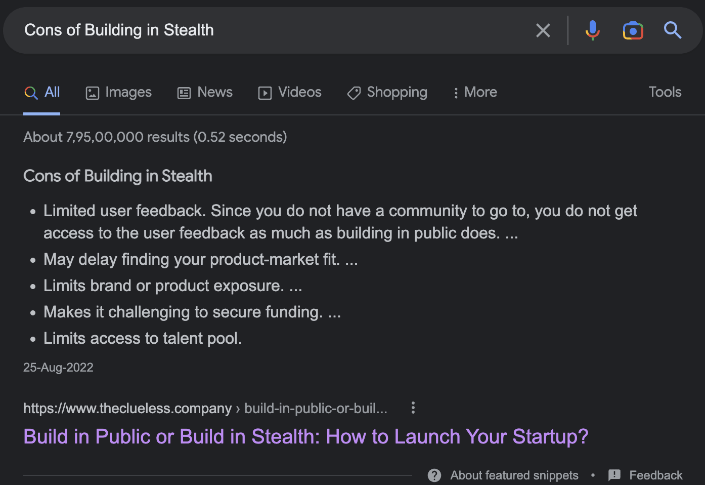The Clueless Company - SEO Experts' blog is in Google's featured snippets. This is out of 7,95,00,000 results. 🔥