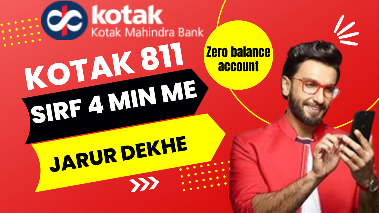 "Unlock financial freedom with Kotak Mahindra Bank's KOTAK 811 - Zero balance account in just 4 minutes! Check out the quick and easy process in this must-watch thumbnail.