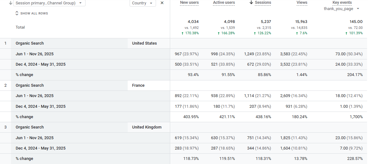 Conversions (Thank-You Page Events): ↑ 204.17%
