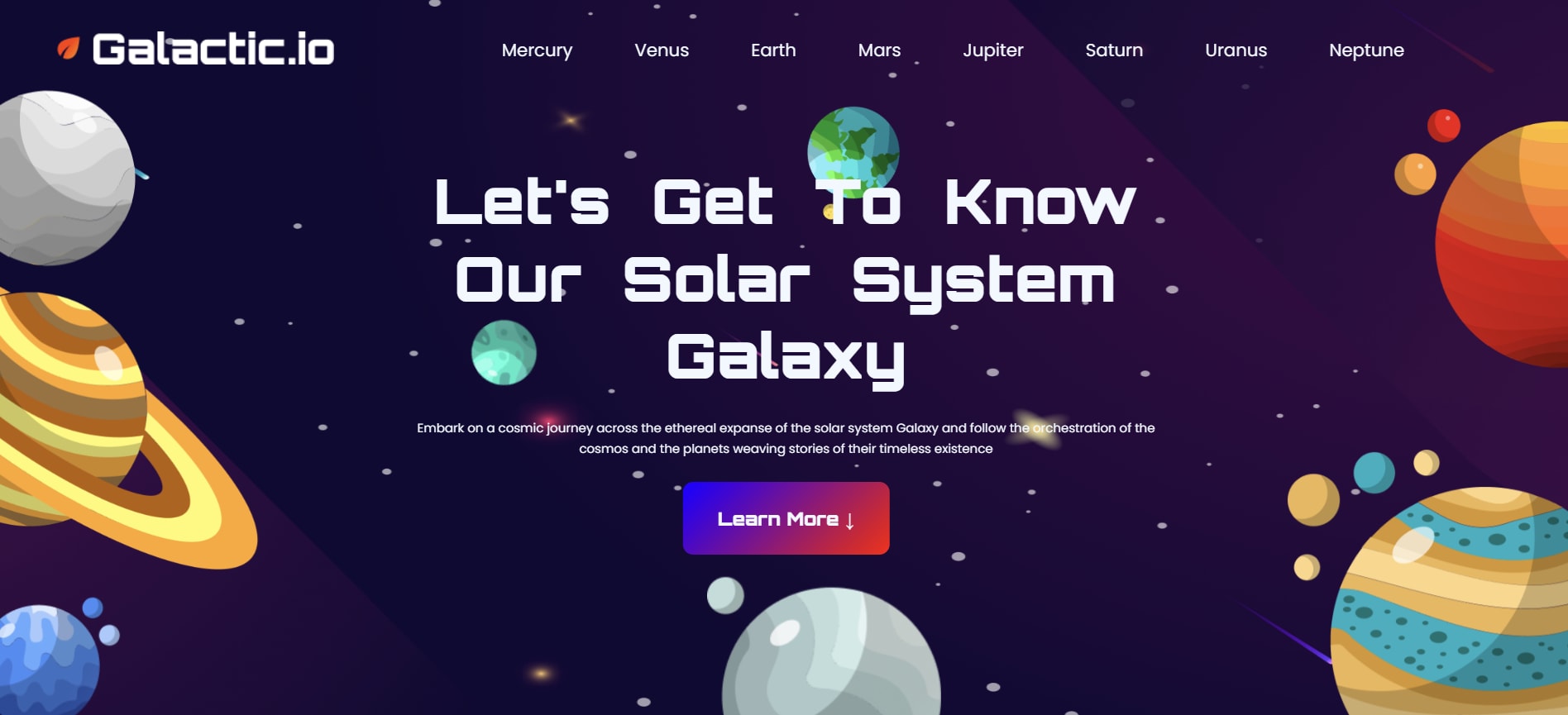 Galactic is a space-themed web project that visually explores the solar system, showcasing planets with key details in a clean and interactive UI built using HTML and CSS.