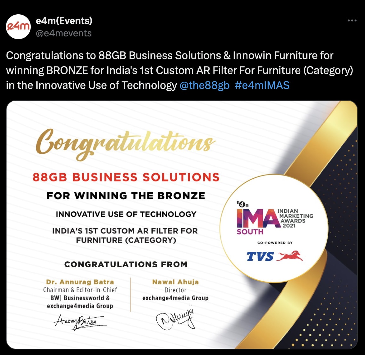 The AR filter for Innowin Furniture was interactive and unique. Some folks thought it deserved an award.