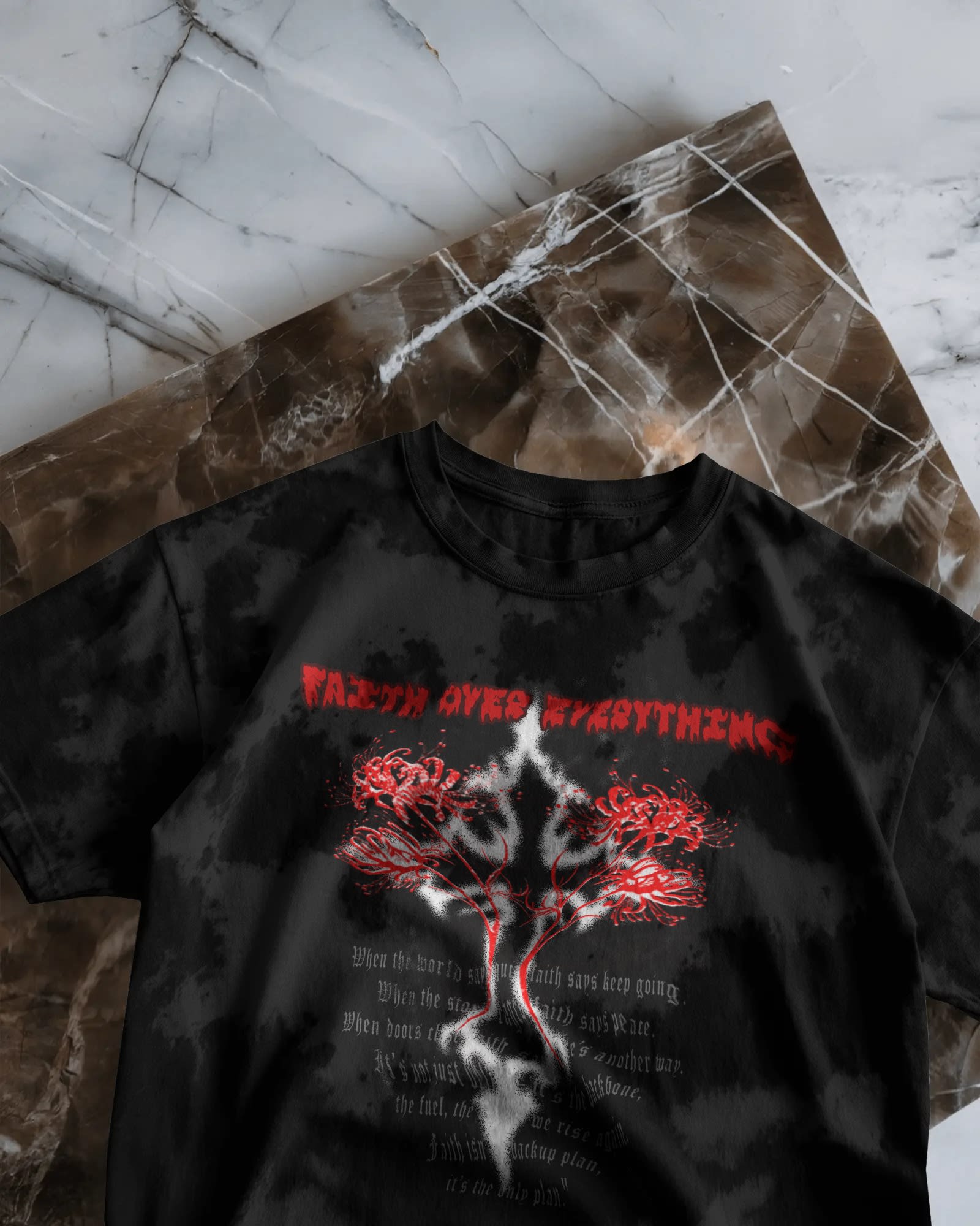Bold, raw, and unapologetic — this acid-wash olive green T-shirt blends urban streetwear vibes with a powerful statement: "Faith Over Everything". The striking red floral graphic paired with abstract white smoke detailing creates a strong visual impact, symbolizing resilience and growth through challenges. A distressed typeface and layered text design give it an edgy, fashion-forward aesthetic that speaks to individuality and strength. #streetwearfashion #graphictees #faithovereverything #fashiondesign #tshirtdesign #urbanstyle #acidwash #streetstyle #designerlife #artwear #edgyfashion #graphicdesign #trendystyle #fashionillustration #wearableart