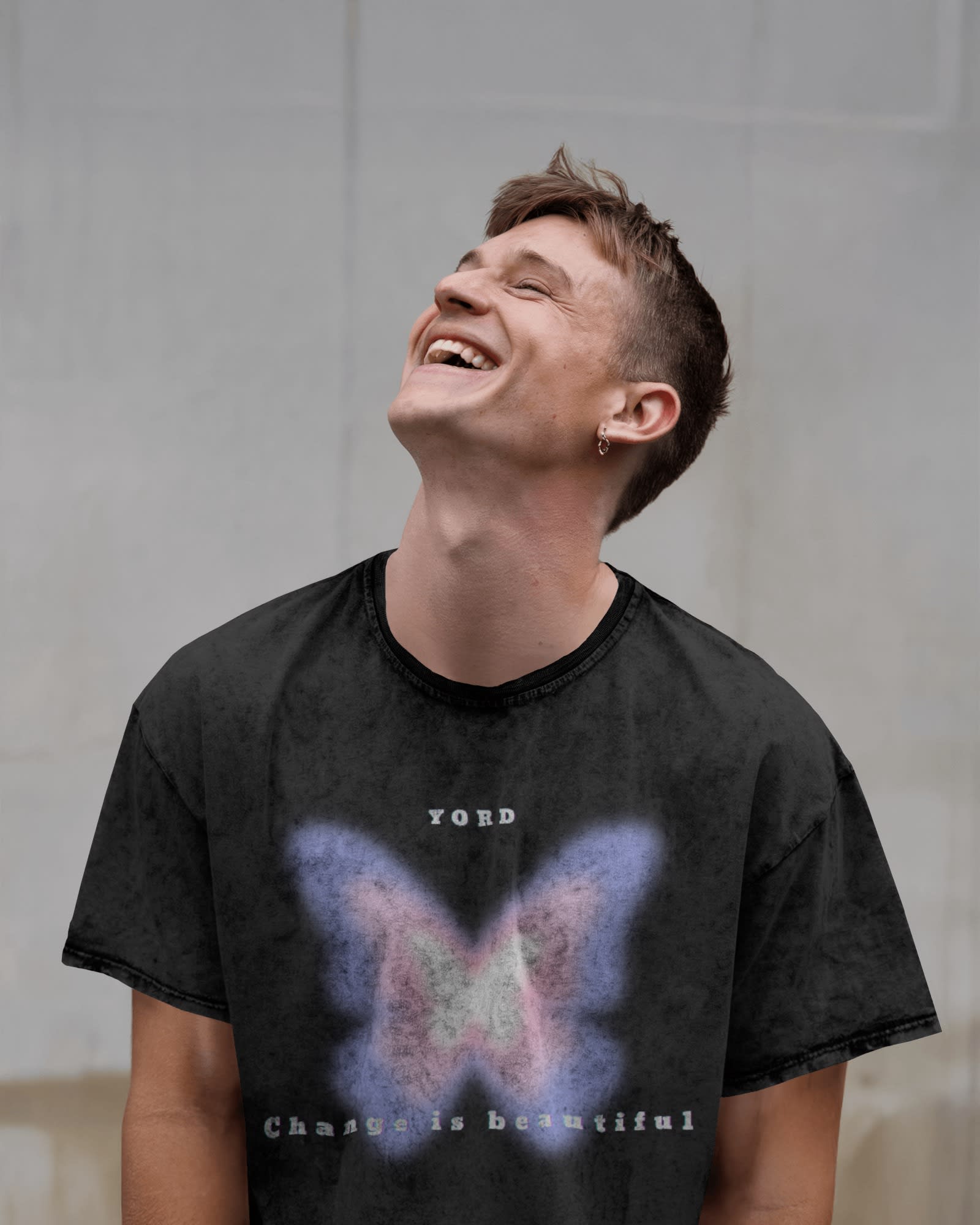 Change is beautiful.🦋 A soft design with a strong message. Let the butterfly say it all. #TshirtDesign #YORD #MinimalStyle #ChangeIsBeautiful