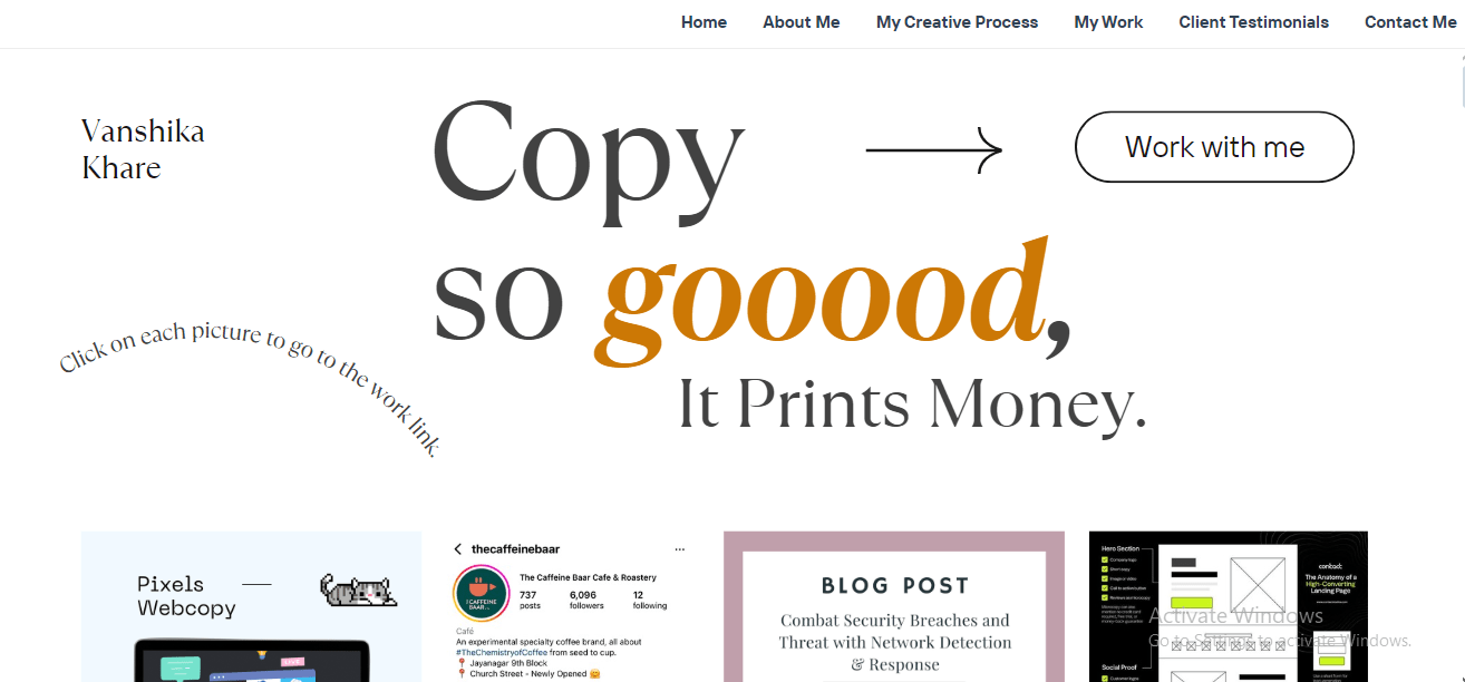 This portfolio is a collation of my work as a copywriter and content writer, showcasing projects across different industries such as tech, marketing, B2C brands, F&B etc. It includes website copy, blogs, social media content, and direct response copy created for freelancers, agencies and businesses.
