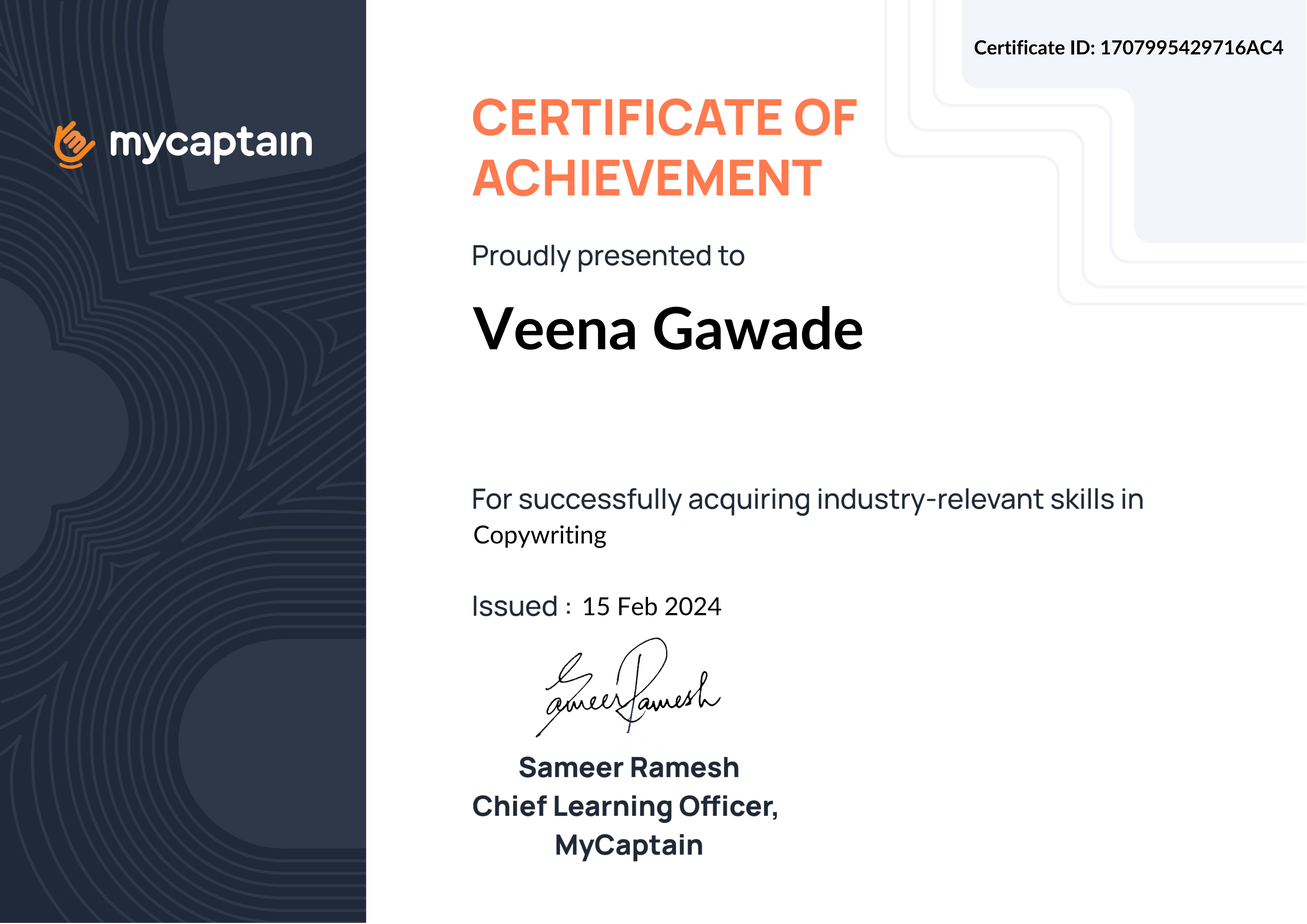 I’ve learned how to craft persuasive and impactful copy that resonates with audiences across ads, emails, and social media. Through this journey, I’ve mastered writing techniques that drive action, developed skills to refine a brand’s unique voice, and understood the importance of targeting the right audience. This experience has enhanced my ability to create compelling, conversion-focused content that delivers real results.