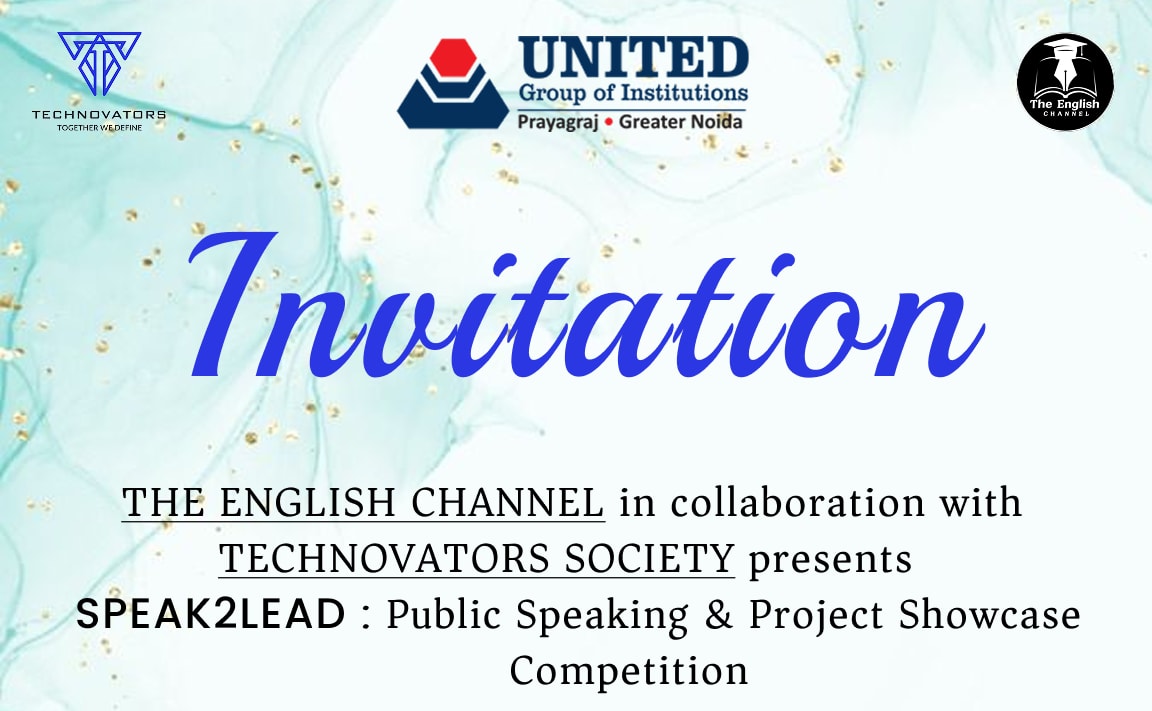 Recently Designed: SPEAK2LEAD โ A communication-based event hosted at United College of Engineering and Research. From concept to final touches, the invite reflected the eventโs tone and energy perfectly! ๐