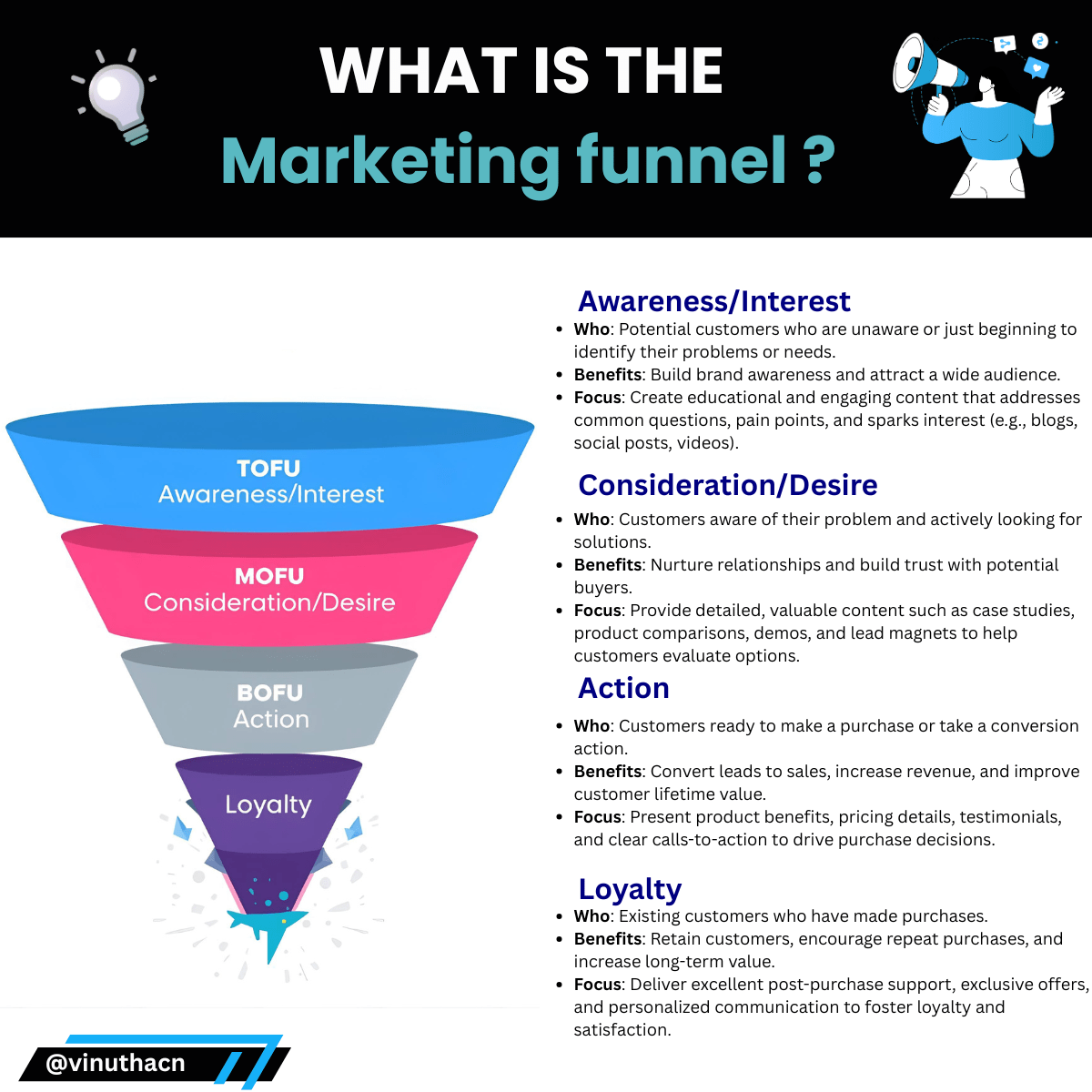 This funnel illustrates how businesses guide potential customers from first discovering a brand to becoming loyal advocates.