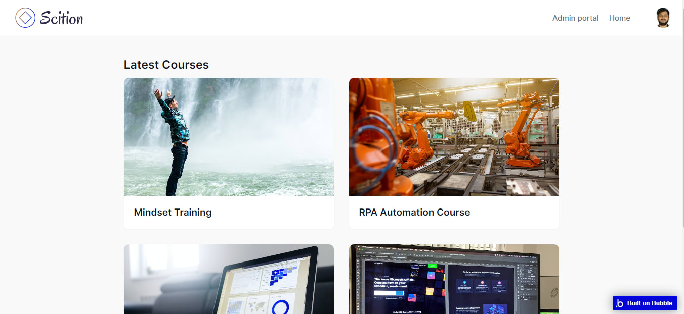 Scition is a course platform that provides free lessons on topics related to emerging technologies and life. Only the app administrator is allowed to create courses and set up lessons for them.