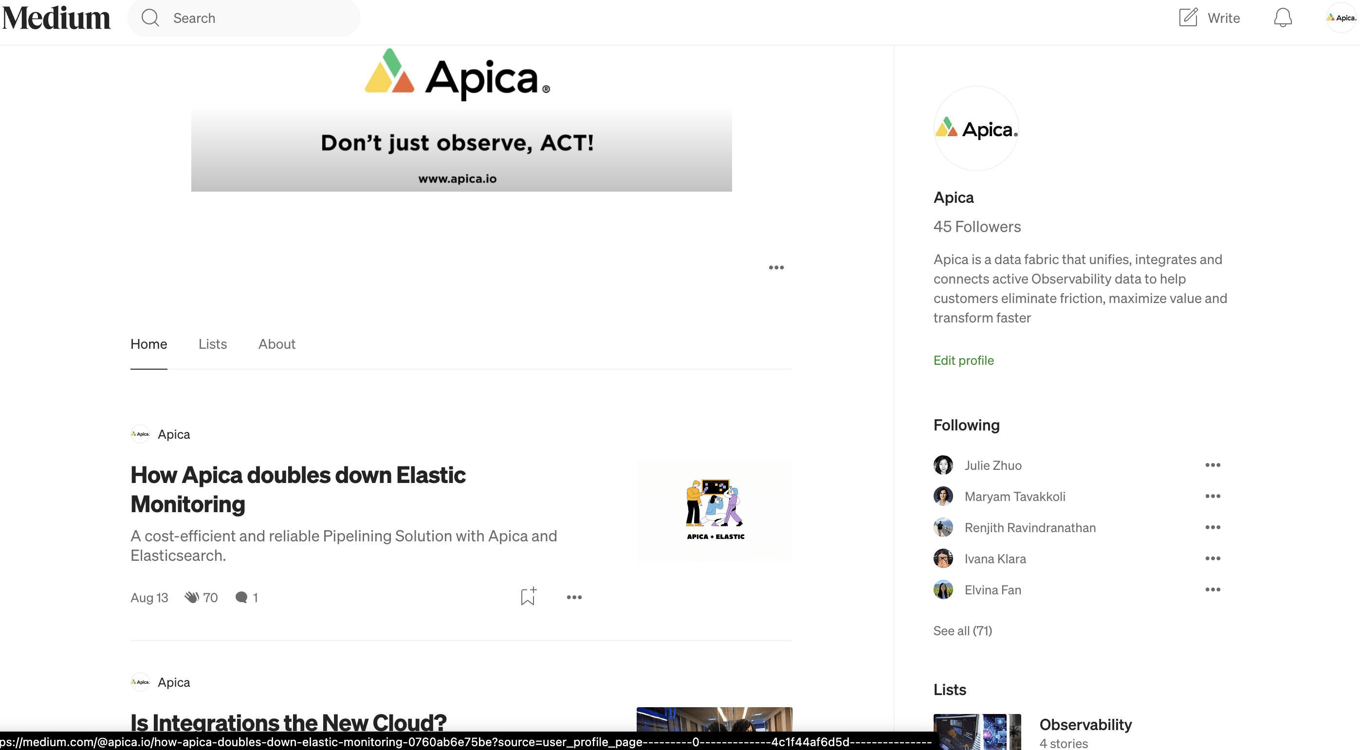 Content Management for Apica's Medium account: